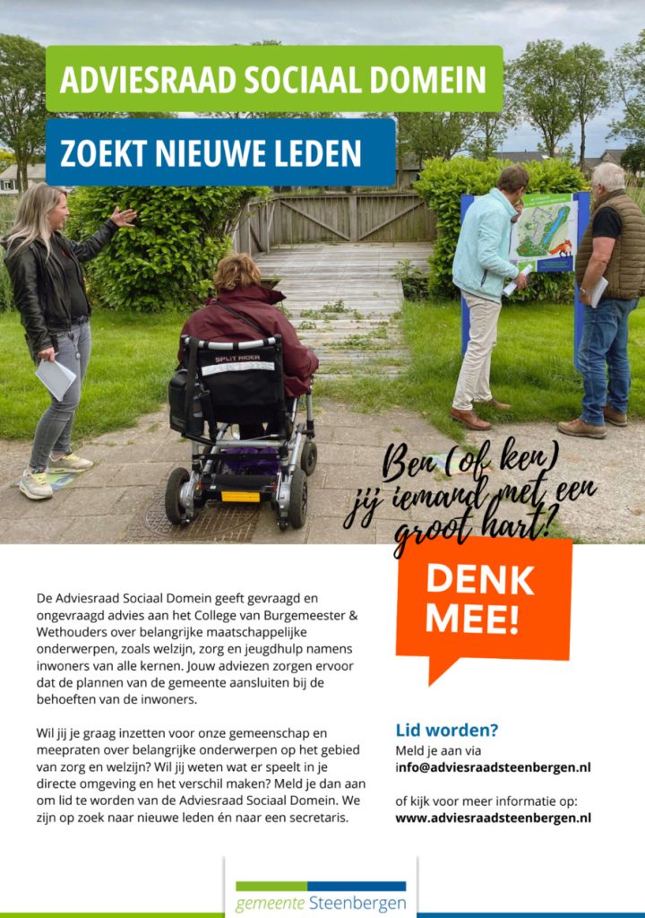 De Adviesraad Sociaal Domein gemeente Steenbergen geeft advies over welzijn, zorg en jeugdhulp namens inwoners van alle kernen in de gemeente Steenbergen. De Adviesraad is ervaringsdeskundig, betrokken en onafhankelijk.